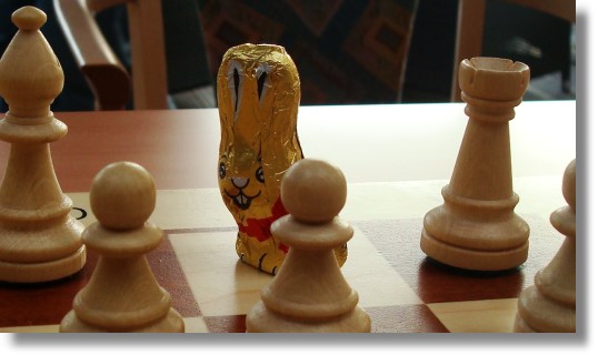 gleichzeitig als Osterhase fungierte. Mit ca. 3 kg Schokoladeneier im Gepäck sorgte er