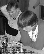 Hart umkämpft waren die Ergebnisse der ersten 4 Bretter. Bernd Hollstein verpasste an entscheidender Stelle die richtige Fortsetzung und musste sich schließlich ungern geschlagen geben (2:3). Die Falk-Brüder Tobias und Kristoffer rangen ihren Gegner jeweils ein respektables Remis ab, Tobias nach kurzem (2,5:3,5), Kristoffer nach langem zähem Kampf (3:4). Und schließlich beendete Eckart Habermann seine Partie nach sehr wechselvollem Verlauf mit einem Sieg, wodurch sich die Licht- und Schattenseiten in beiden Mannschaften friedlich ausglichen und das Ergebnis 4 : 4 eigentlich viel mehr war, als wir uns erhofft hatten.