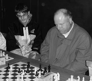 Ingo Vogler kämpft noch, und David (hat seine Partie bereits beendet) schaut zu