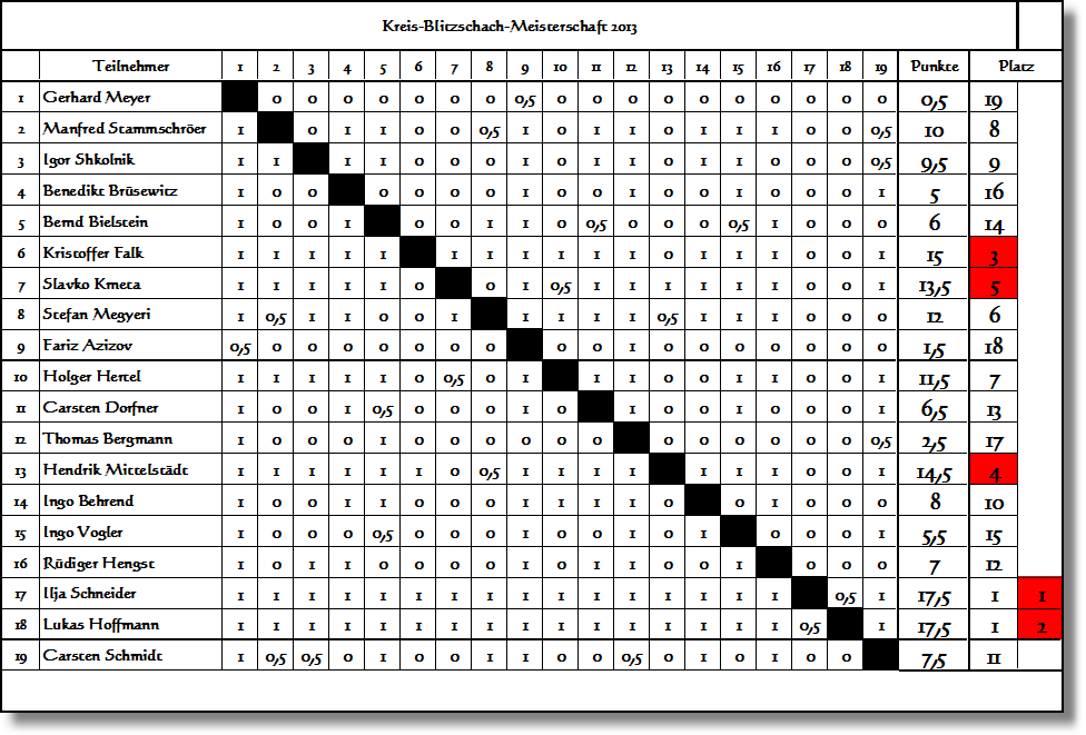 Kreis-Blitzmeisterschaft 2013 in Winsen (Aller) am 21.12.2013 - Ergebnisliste