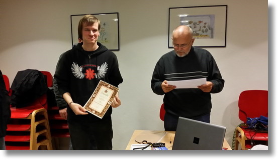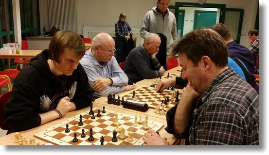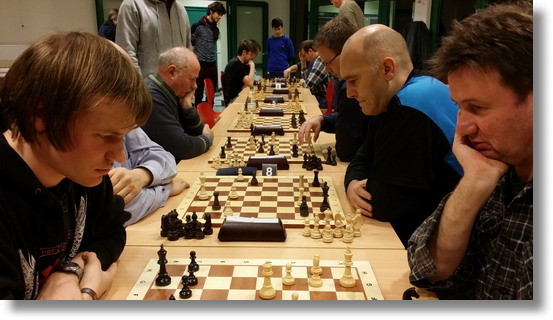 Offene Kreismeisterschaft im Blitzschach Bereits zum dritten Mal richtete der MTV "Fichte" Winsen (Aller) zu Weihnachten die Offene Kreismeisterschaft im Blitzschach aus. Fast also schon Tradition. Traditionell gut auch die Spielbedingungen. Dr. Jahns leistete als Turnierleiter tadellose Arbeit und war sichtlich erfreut, sich mal nicht um Enkelkinder, sondern um Schachspieler kümmern zu dürfen. Die 19 Teilnehmer machten allerdings auch keine Schwierigkeiten, denn Auseinandersetzungen wurden ausnahmslos auf dem Schachbrett ausgetragen. Die klassische Bedenkzeit beim Blitzschach von 5 Minuten pro Spieler und Partie ist zwar nicht jedermanns Sache, trotzdem stehen am Ende meistens die oben, die man dort auch erwartet. In diesem Jahr war es nicht (aber fast) anders. Der für Berlin startende Bundesligaspieler Ilja Schneider reiste mit solch überlegener Wertungszahl (DWZ ~ 2500 - zum Vergleich: durchschnittlicher Vereinsspieler 1600, Weltmeister Carlsen etwas über 2800) an, dass über den Turniersieger keinerlei Zweifel bestand. Doch der kam plötzlich auf, als der Hannoveraner Lukas Hoffmann (in der Oberliga für den HSK Lister Turm aktiv, DWZ ~2200) dem Internationalen Meister Schneider ein Remis abtrotzte, alle anderen Partien gewann und so einen Stichkampf um den Turniersieg erzwang. Zunächst wurde aber der neue Kreismeister geehrt. Kristoffer Falk vom MTV "Fichte" Winsen (Aller) stand mit stolzen 15 Punkten aus 18 Partien auf dem 3. Platz der Gesamtwertung und war damit der bestplatzierte Teilnehmer aus dem Landkreis Celle. Titelverteidiger Slavko Krneta (ebenfalls vom MTV Fichte) schaffte es diesmal mit 13,5 Punkten "nur" auf den 4. Platz der Gesamtwertung und wurde damit "Vize-Kreismeister". Der Turniersieg aber wurde in einer sogenannten Armageddon - Entscheidungs-Partie entschieden. Dabei erhielt Lukas Hoffmann per Los die weißen Steine und 5 Minuten Bedenkzeit, während Ilja Schneider mit Schwarz und nur 4 Minuten Bedenkzeit auskommen musste. Das Fiese bei dieser Art des schachlichen Elfmeterschießens ist, dass Weiß gewinnen muss - dem Schwarz-Spieler würde ein Unentschieden zum Sieg reichen. Doch Weiß gelang der erforderliche Sieg nicht.
