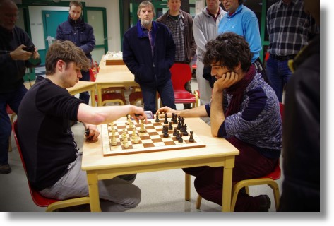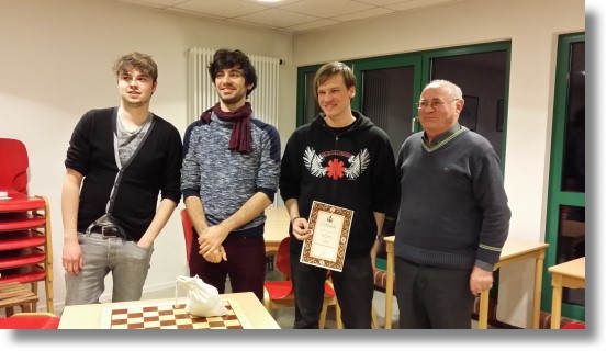 Obwohl Lukas mit den weißen Steinen sich zunächst materiellen Vorteil erspielte, musste er am Ende doch die Hand zur Aufgabe reichen: Ein schwarzer Bauer schaffte es auf der 2. Reihe und drohte dort mit Schrecklichstem (Umwandlung zur Dame). Damit fand die Offene Kreismeisterschaft 2013 am Ende in IM Ilja Schneider also einen standesgemäßen Sieger, und viele versprachen (einige drohten), im nächsten Jahr zur 4. Ausgabe der Kreis-Blitzschach-Meisterschaft nach Winsen zurückzukehren. Alle sind herzlich willkommen.