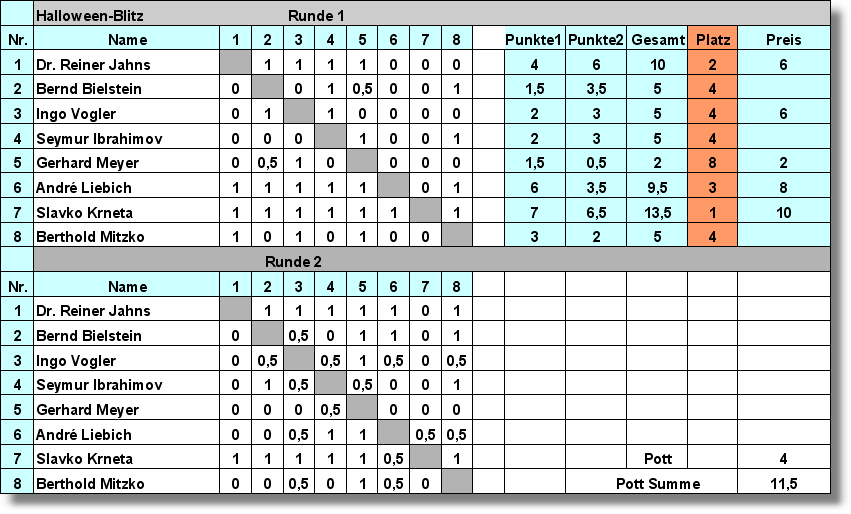 Hier geht's zum Blitzschach 2008 und 2009, Regeln, Tabellen, Fotos.