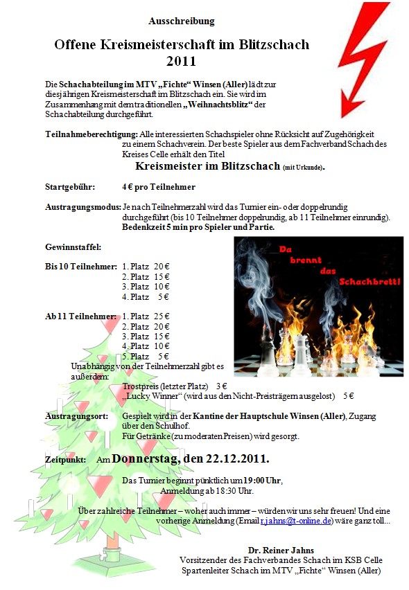 Offene Kreismeisterschaft im Blitzschach 2011 "Weihnachtsblitz"