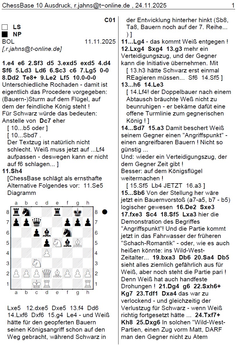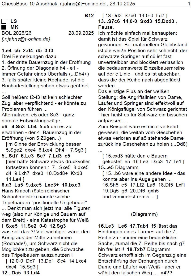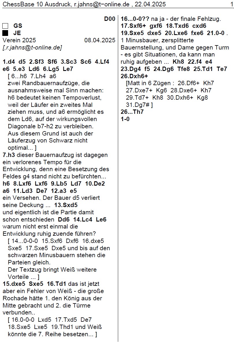 "Eine Partie, gespielt von einem unserer Schachfreunde in der Bezirks-Oberliga