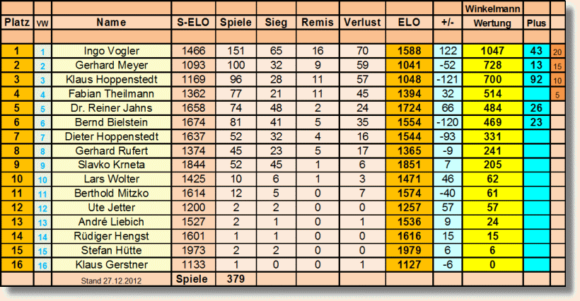 Neueinsteiger).Nach dem Spiel wird jede Partie ELO (intern) ausgewertet