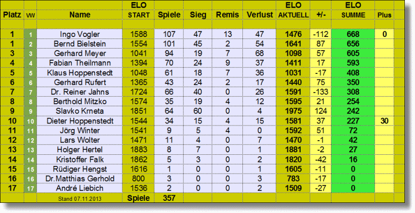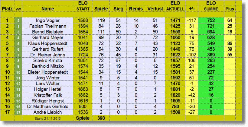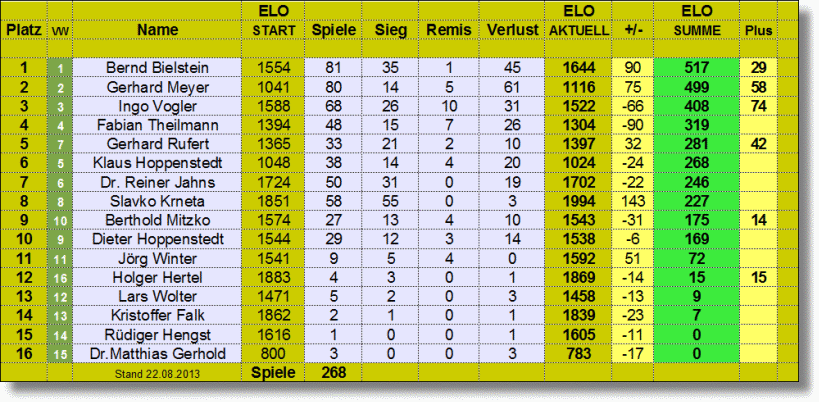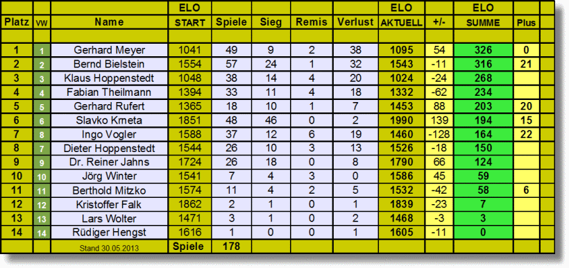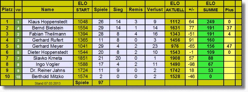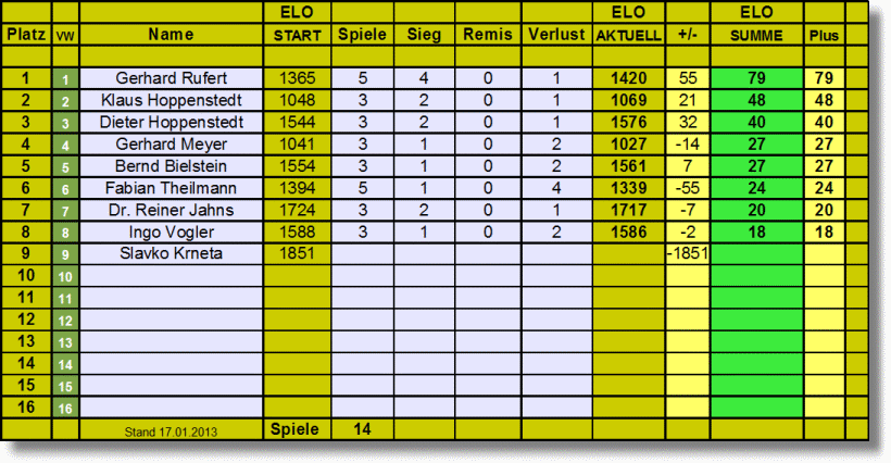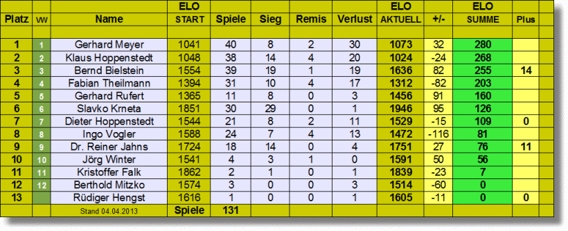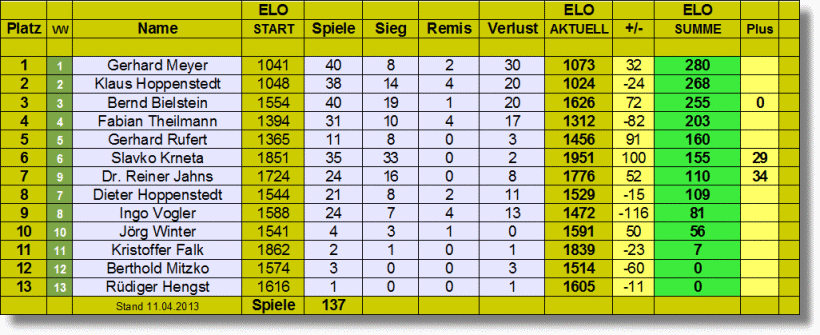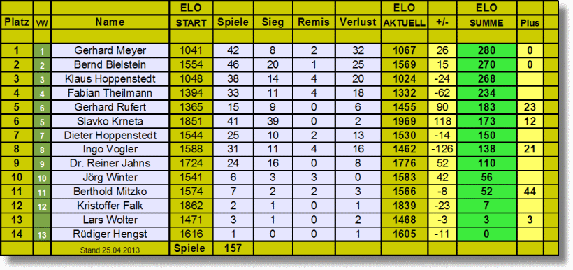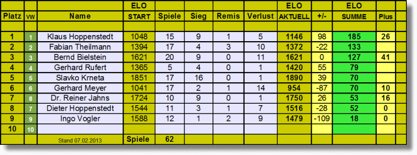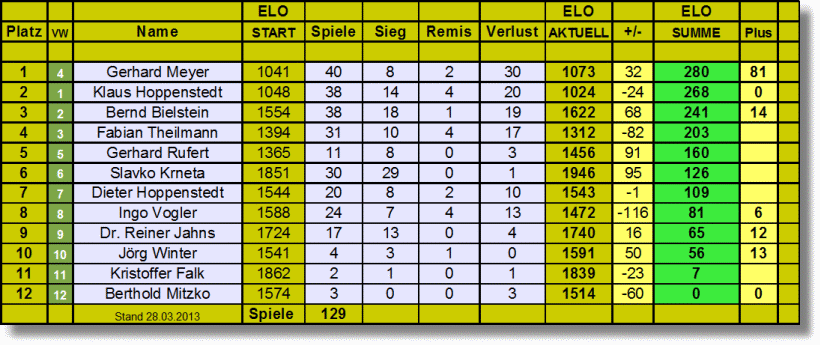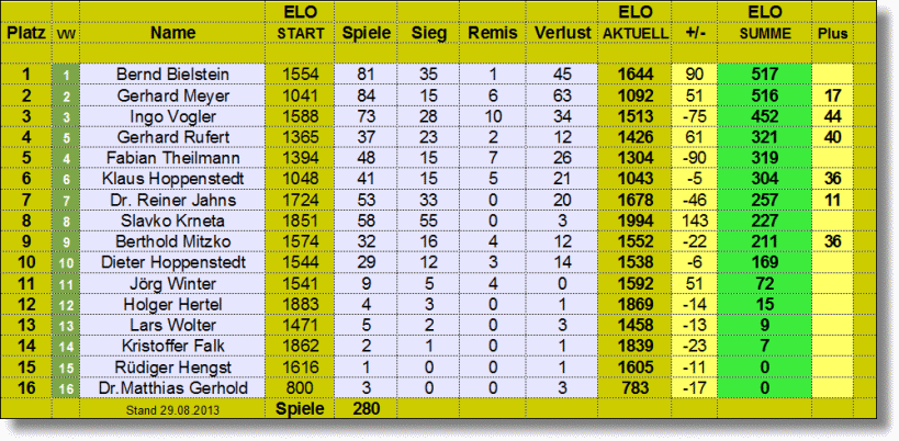 Start-ELO. (ELO der Soap 2012, bzw. aktuelle DWZ für Der Einstieg in das Turnier ist jederzeit möglich