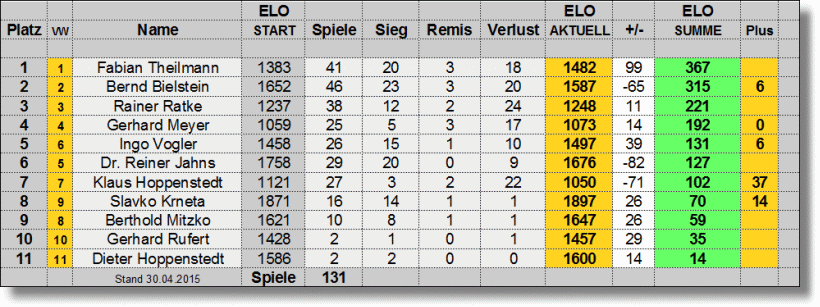 Start-ELO. (ELO der Soap 2014, bzw. aktuelle DWZ für Neueinsteiger). Der Einstieg in das Turnier ist jederzeit möglich
