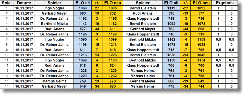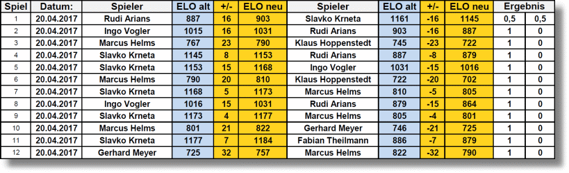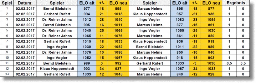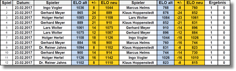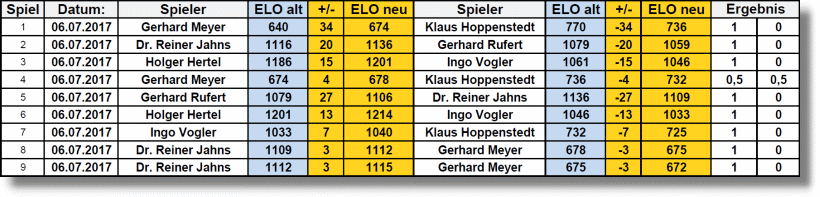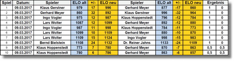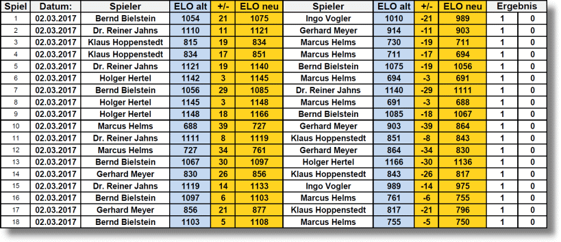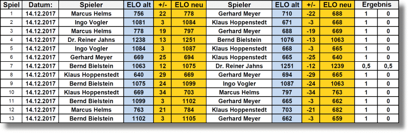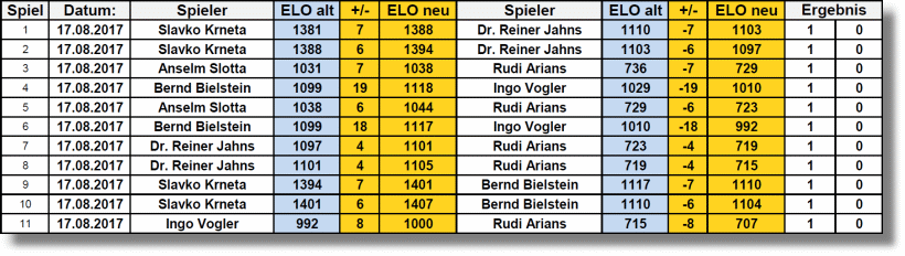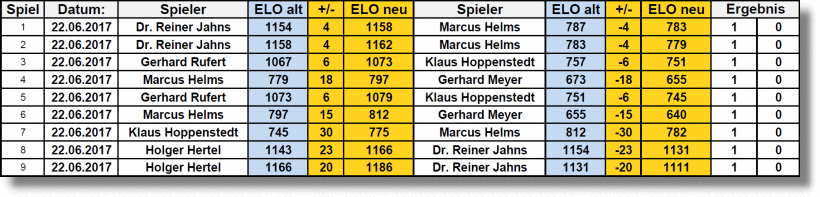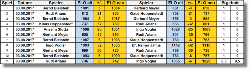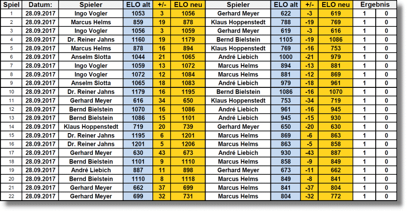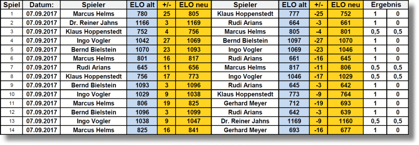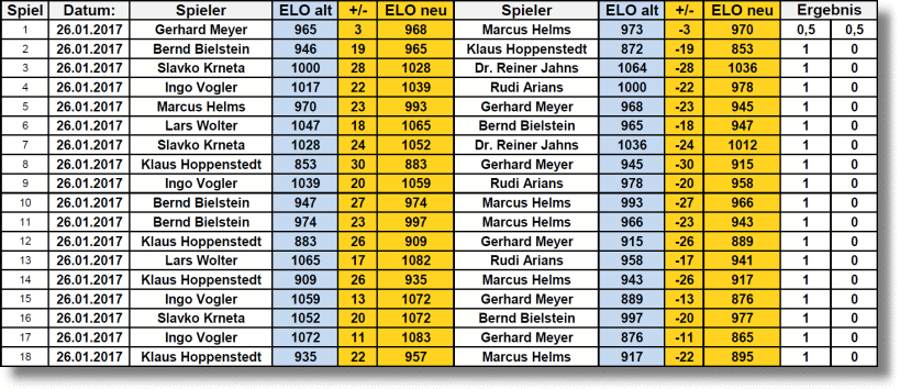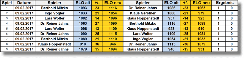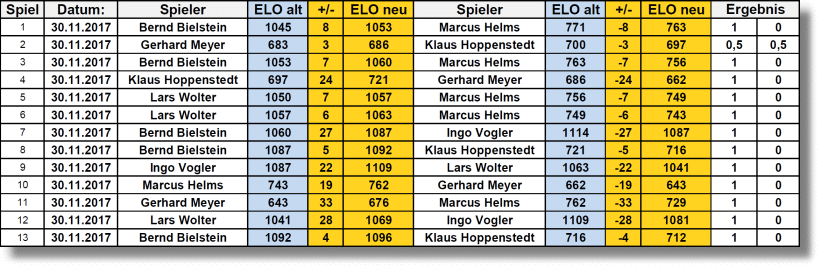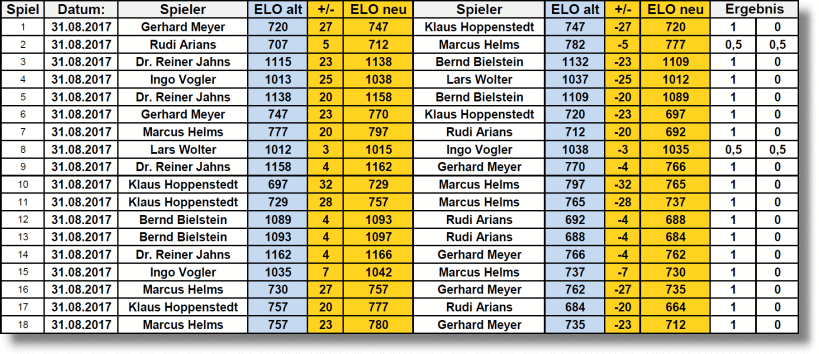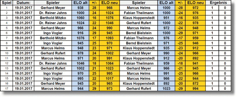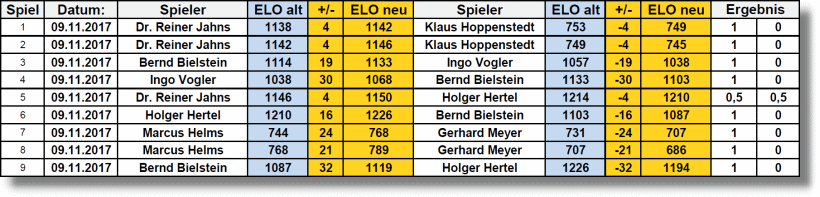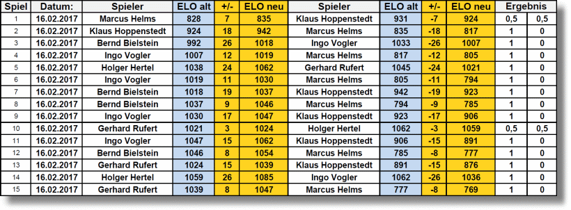 Nach dem Spiel wird jede Partie ELO (intern) ausgewertet und der evtl. Punktegewinn