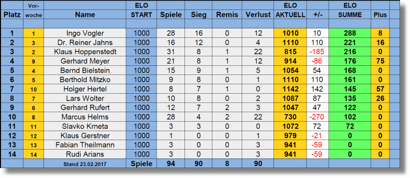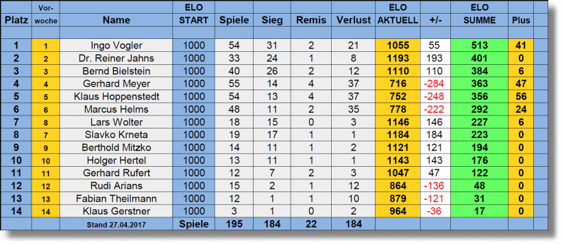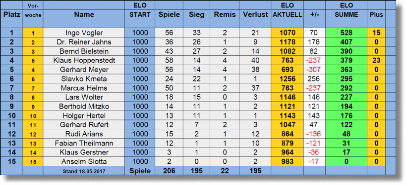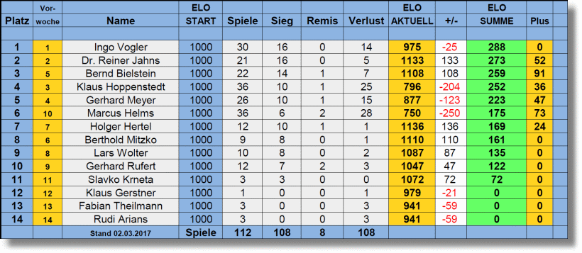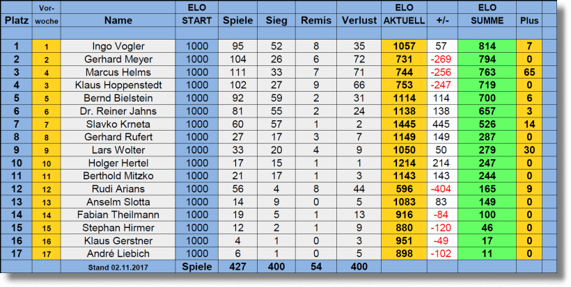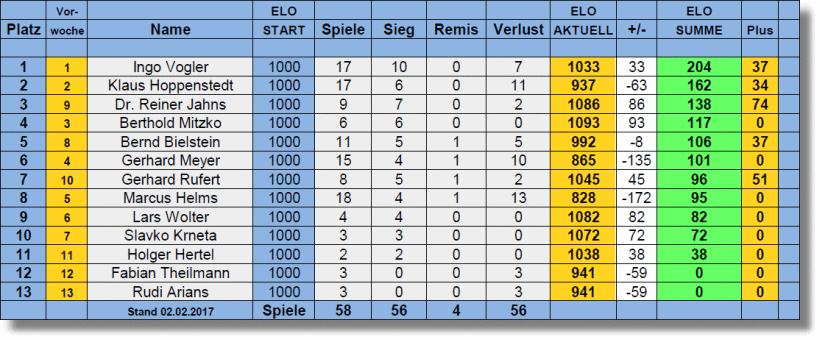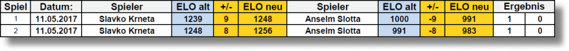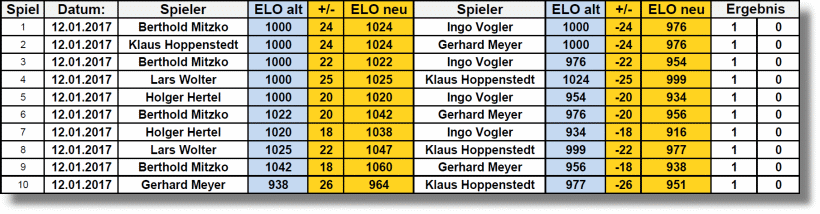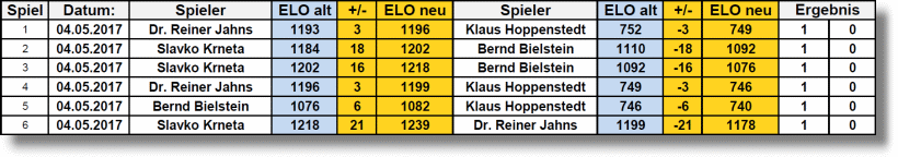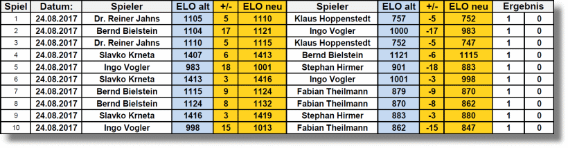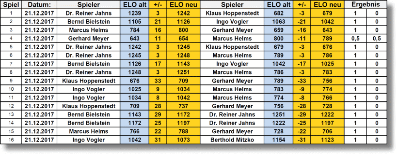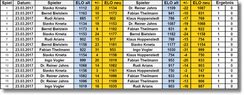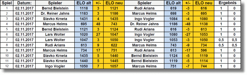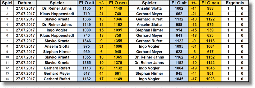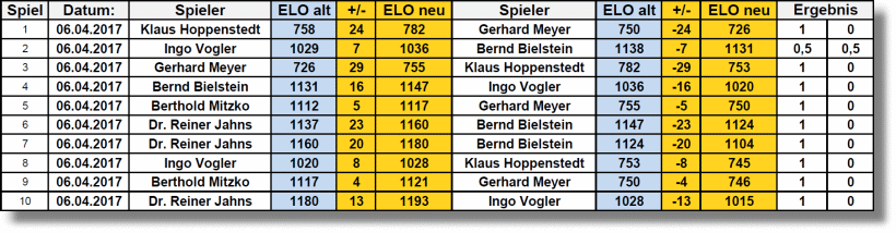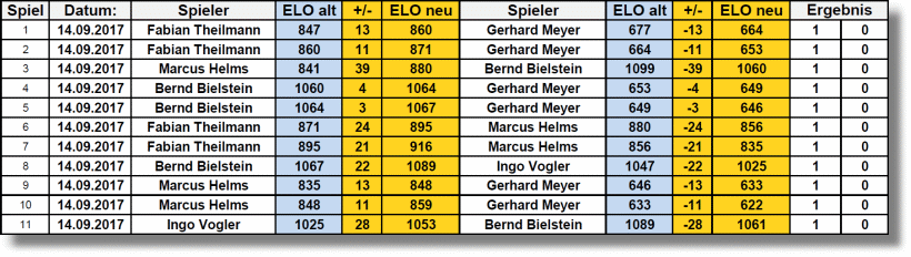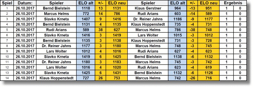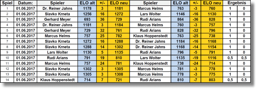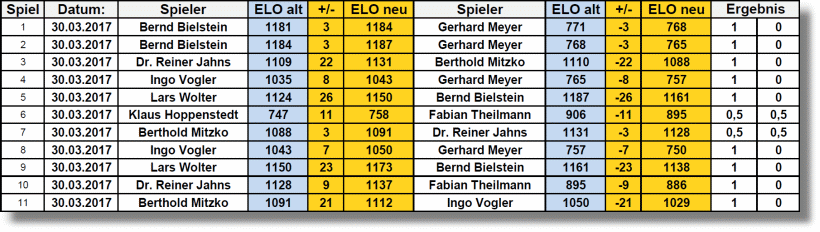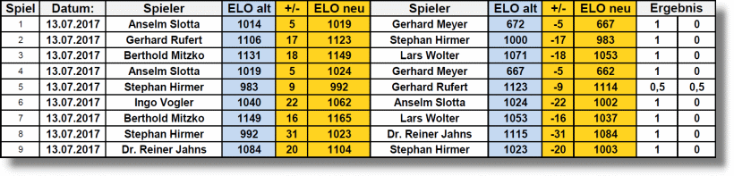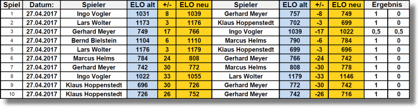 Nach dem Spiel wird jede Partie ELO (intern) ausgewertet und der evtl. Punktegewinn