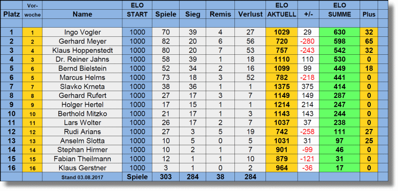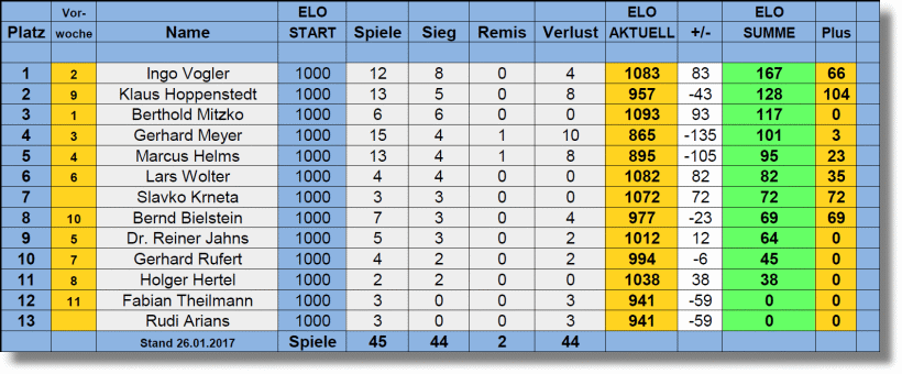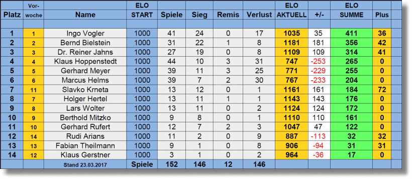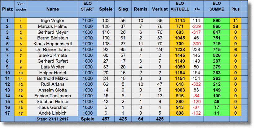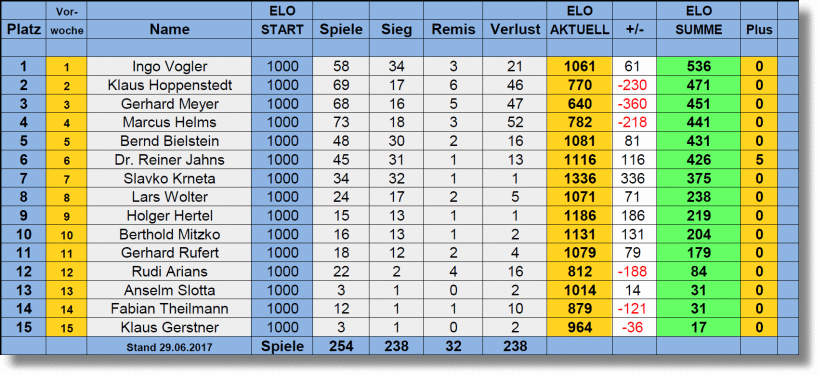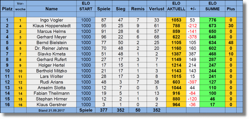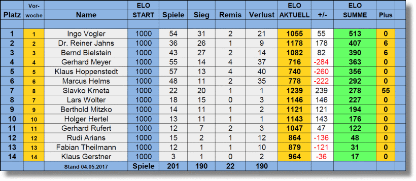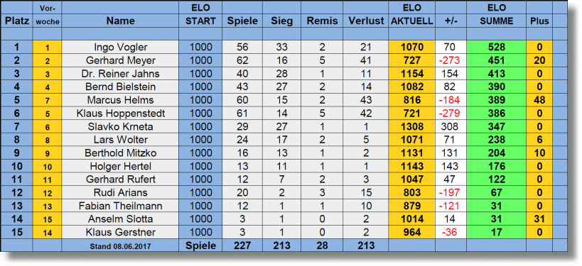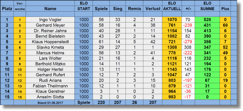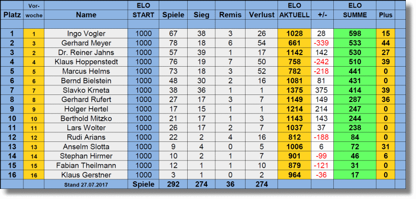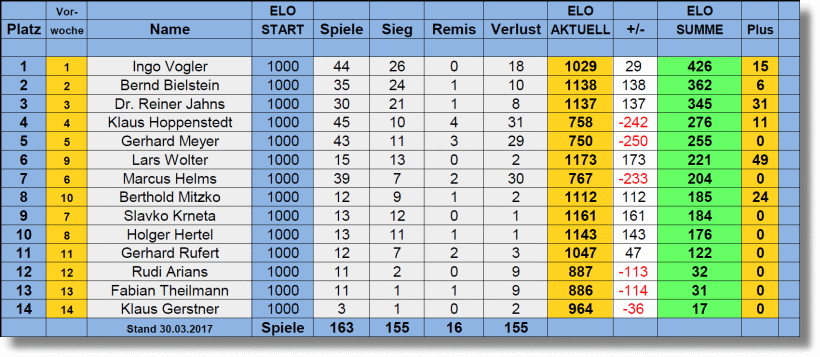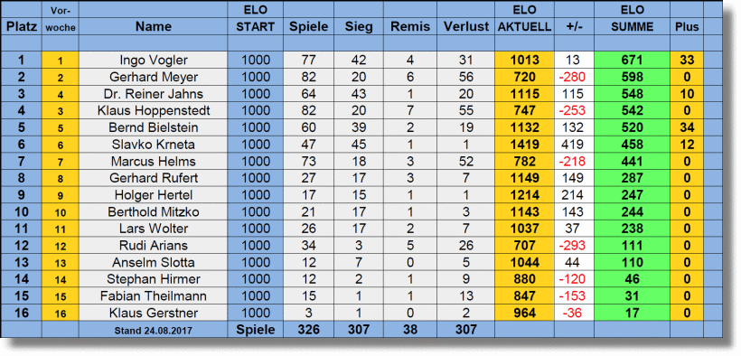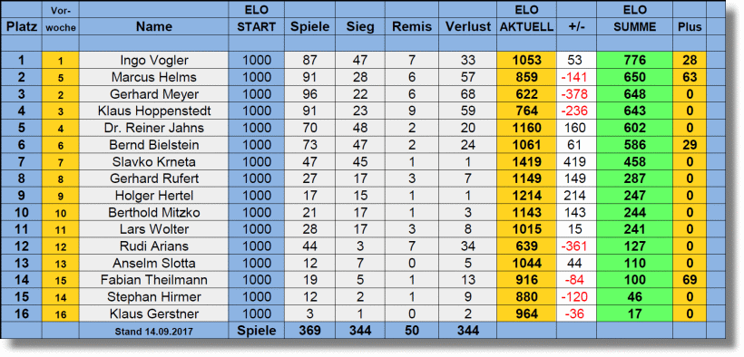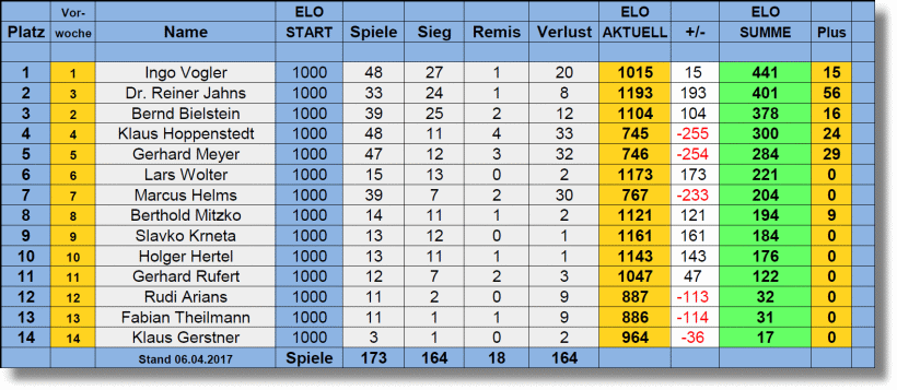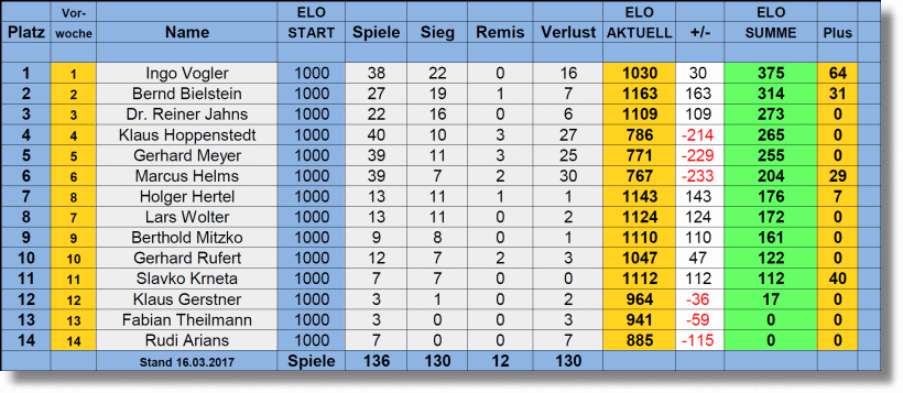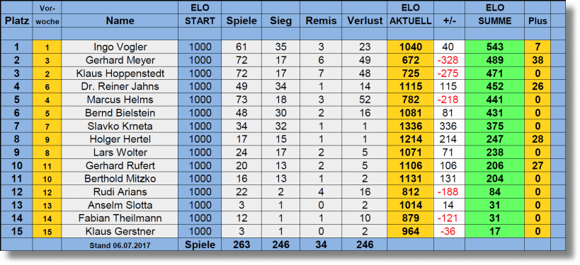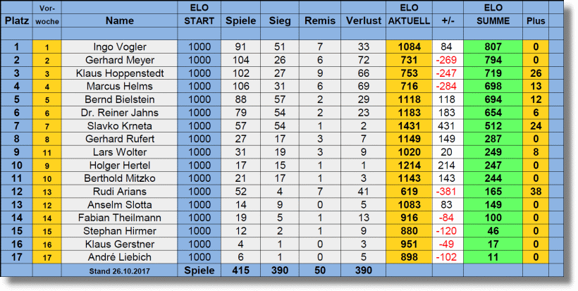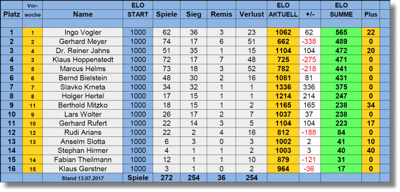 Die Berechnung der ELO wurde nach jedem abgelaufenen