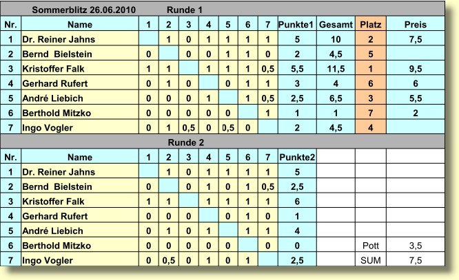 Gesamtwertung aller 4 Blitzturniere , ermittelt. (Da Reiner Jahns seinen Taschenrechner