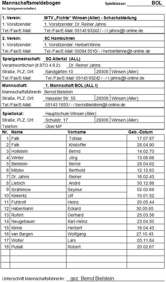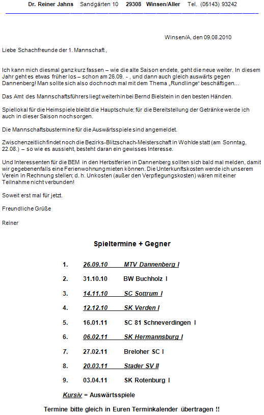 Bernd Bielstein bittet darum, im Monat Juni, alle Spiele der internen Vereinsmeisterschaft