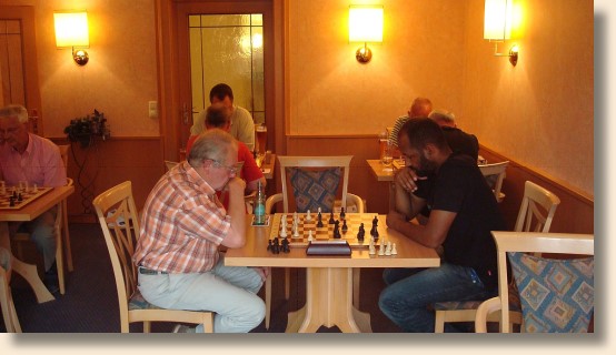 wir einigen uns auf remis. Bernd träumt vom Turniergewinn, hat es mit Weiß