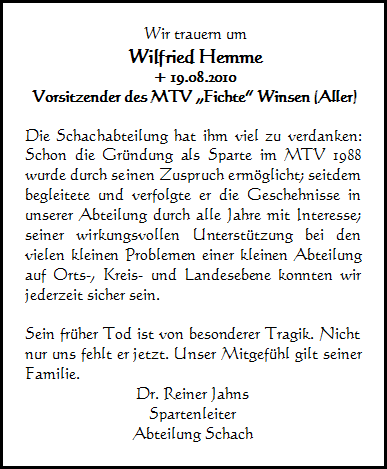 Hallo an alle, Mitglieder und Gäste der Schachabteilung --