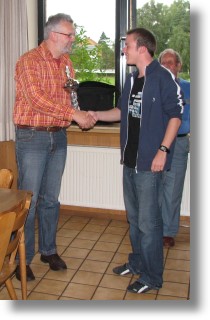 Der Pokal für den 2. Platz wird Tobias Falk übergeben |